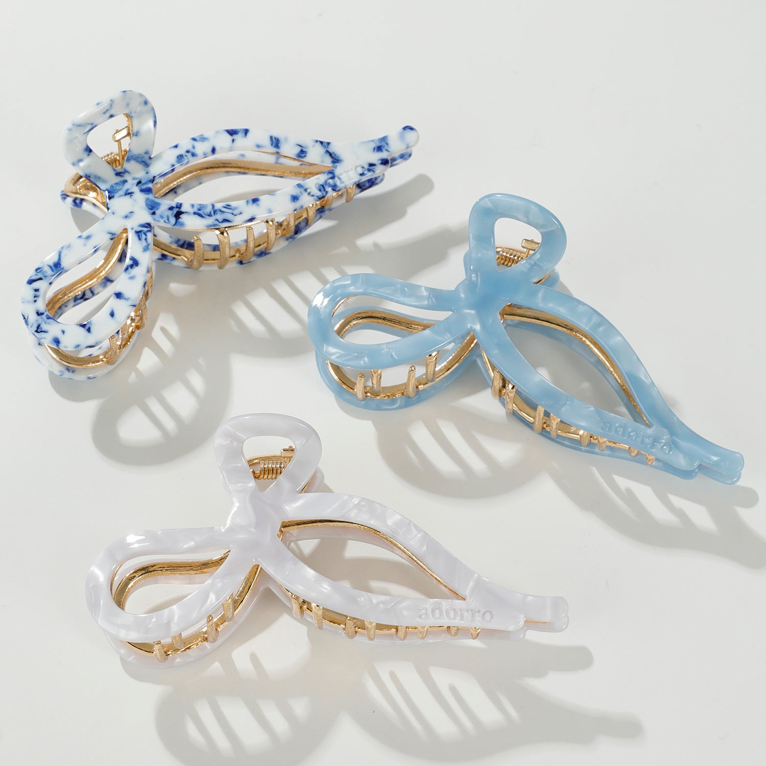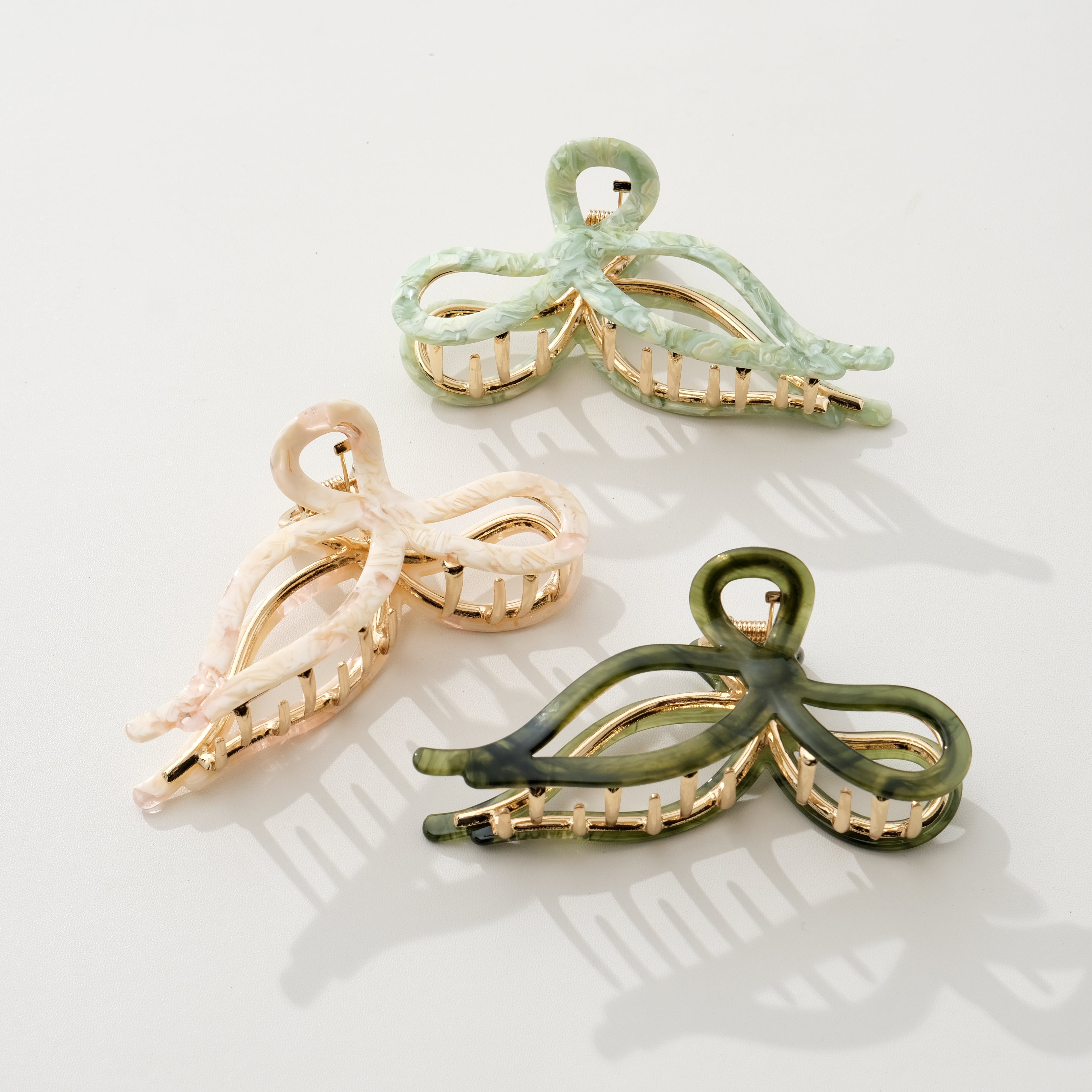 Sabrina Ribbon Metal Bow Claw Clip - Large